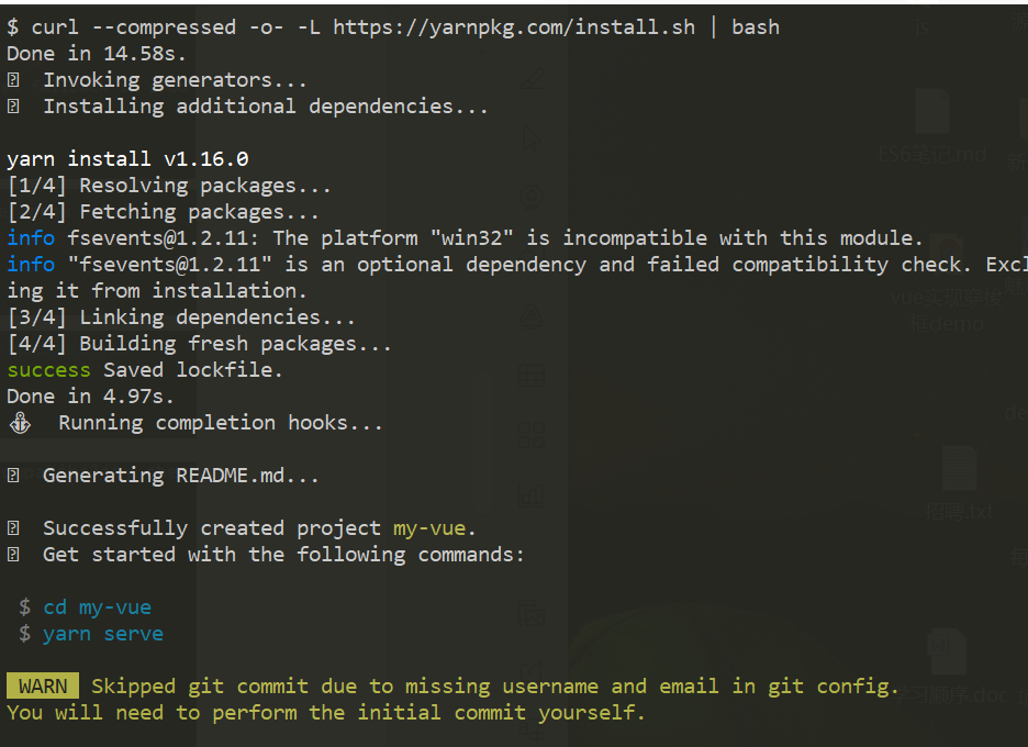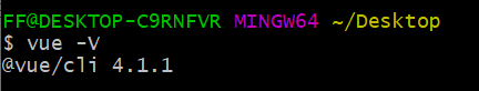 安装完成之后输入 vue -V(注意这里是大写的“V”),如下图,如果出现相应的版本号,则说明安装成功。
