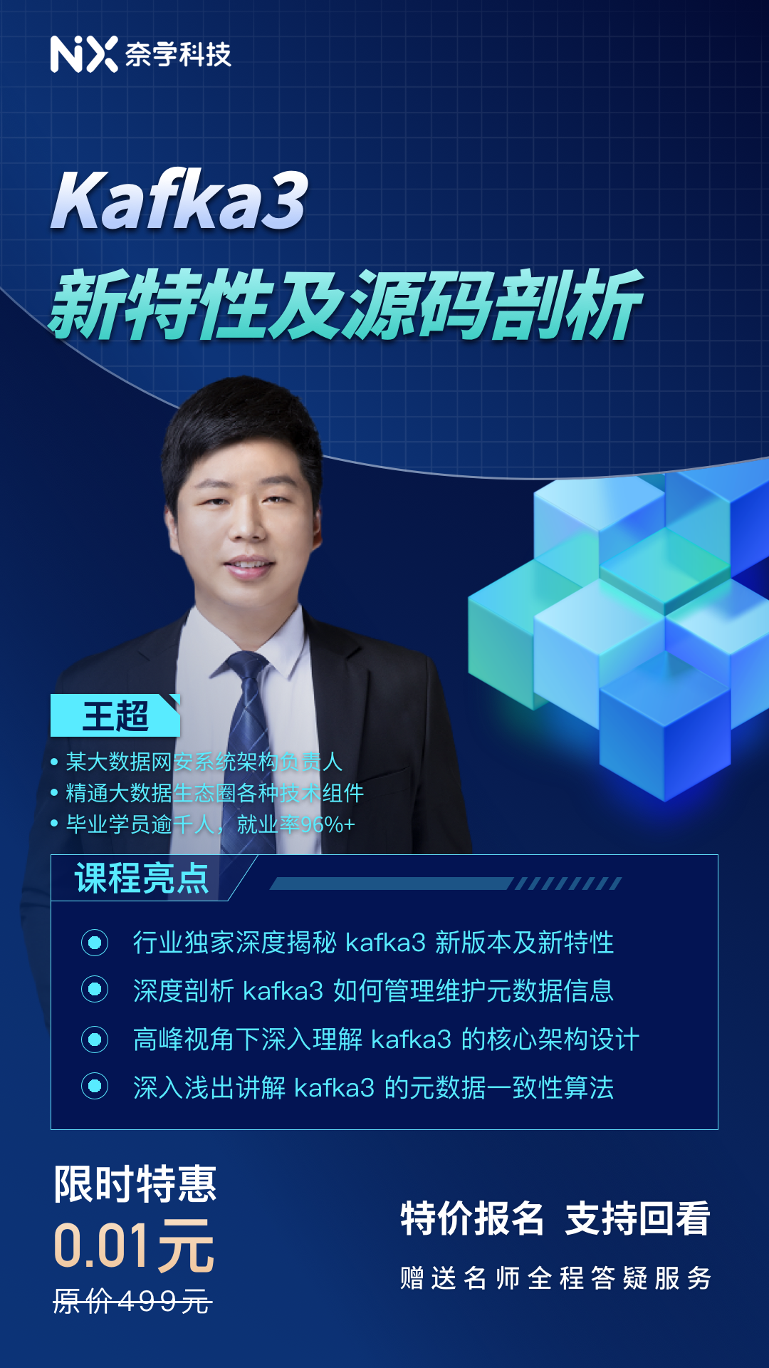 为了帮助广大Java开发工程师、大数据研发工程师、架构师对Kafka3.0的新特性有更加深入的认识并能够做到灵活运用,高效提升工作效率,前中国移动研究院大数据工程师王超老师打造了《Kafka3新特性及源码剖析》在线专栏课,2天时间,带你掌握时下最前沿的大数据核心技术,独家揭秘Kafka3的新特性,深入解读源码设计,解析元数据一致性算法,领略Kafka3架构设计之美,获悉系统性能提升的破局之道。
