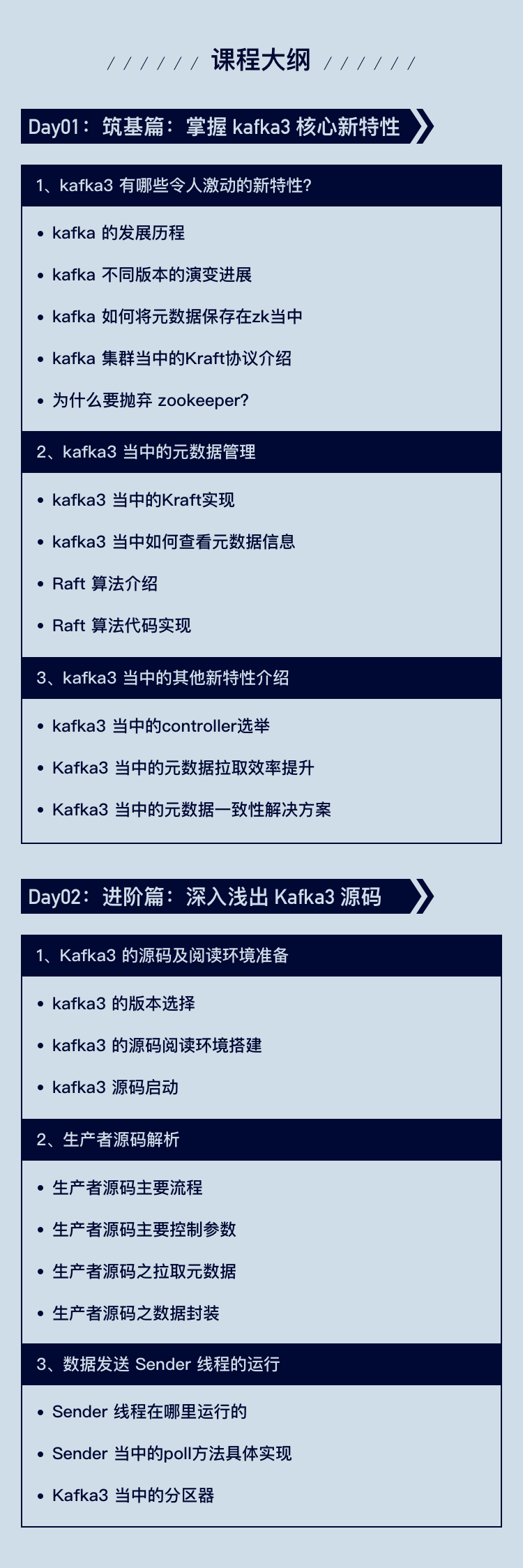 Day01 筑基篇:Kafka3的新特性介绍 Day02 进阶篇:深入浅出Kafka3源码