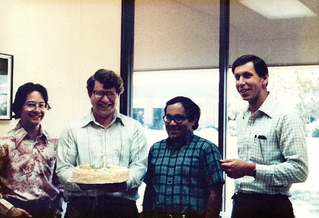 图 1 左起 Ed Oates、Bruce Scott、Bob Miner、Larry Ellison