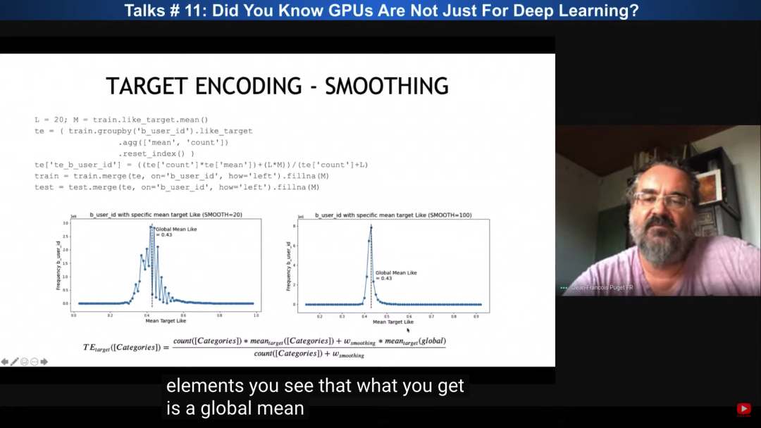 Puget首先介绍了Target Encoding原理和平滑操作,并讲解了具体的代码。