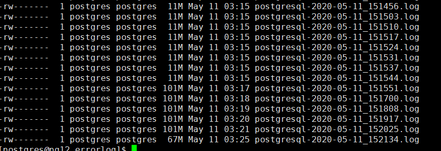 在搭建完PG后,系统上线前并无问题,在系统上线后第二天,有人反馈PG的日志将系统的磁盘空间大量的占用,并且7 分钟就产生一个日志文件,后续为了减少相关的日志的数量较快的增长,做了如下修改