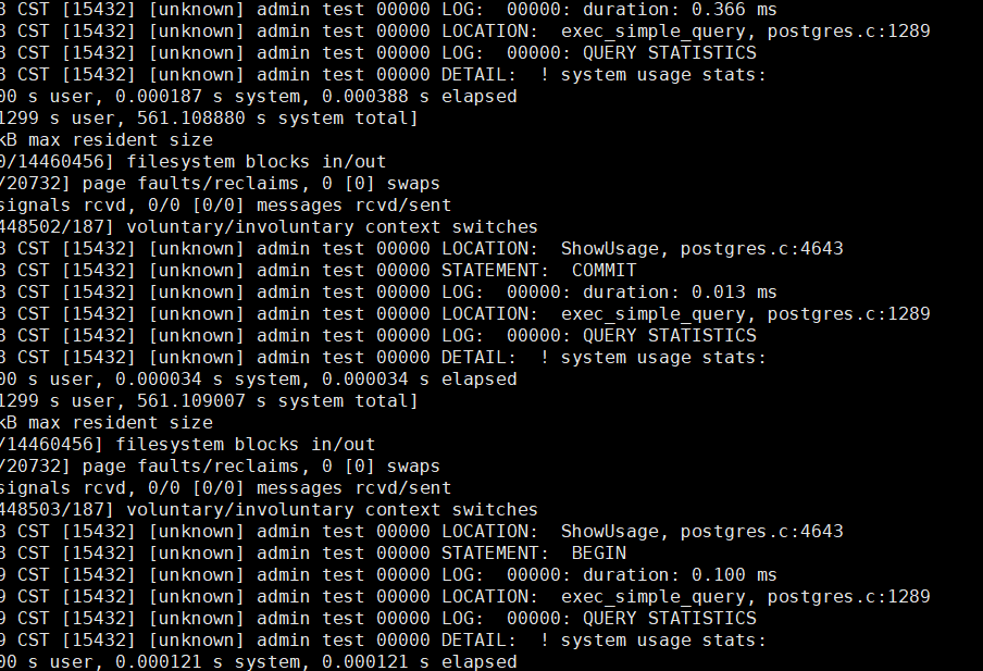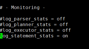 罪魁祸首就是下面图中的log_statement_stats 这个设置,将他打开后,系统会根据每个SQL 产生一个语句的性能方面的统计信息,可以想象如果将他打开可以看到每条语句在执行中的状态, duration 等等信息,但这样就会产生大量的日志,经过统计次系统1秒产生1MB的日志,(此系统每秒插入上百条数据),在关闭后,问题解决。