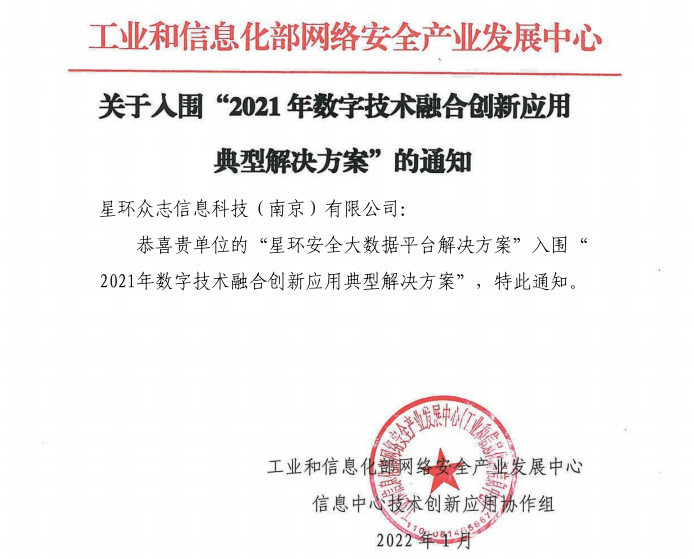 近日,工业和信息化部网络安全产业发展中心发布了“2021年数字技术融合创新应用典型解决方案”入围通知。星环科技安全大数据平台解决方案凭借在技术先进性、应用示范性和产业带动性等方面的优秀表现,从429家申报单位申报的663个解决方案中脱颖而出,成功入围。