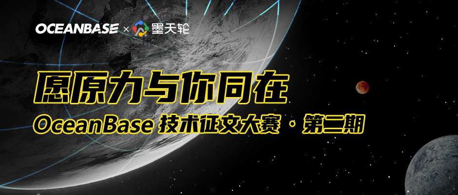 值此新版本发布之际,OceanBase 特联合墨天轮技术社区推出第二届技术征文大赛,邀请广大开发者分享自己的真实体验,以文会友的同时,分享自己的技术理念,深入探索分布式数据库的原力。