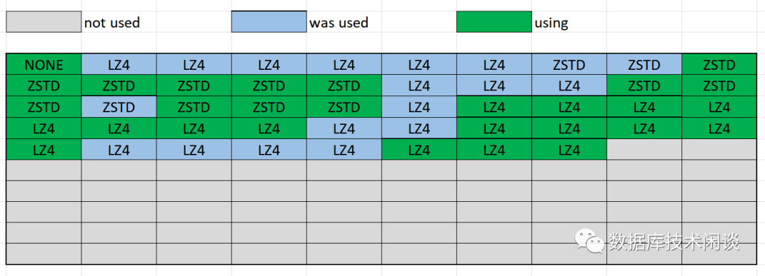 selectdata_version,compressor_name ,count(*), round(sum(occupy_size)/1024/1024)occupy_size_mb, avg(row_count) row_count_avg, sum(row_count) row_count_sumfrom__all_virtual_partition_sstable_macro_infowhere1=1 and tenant_id=1001group bydata_version,compressor_name ;+--------------+-----------------+----------+----------------+---------------+---------------+|data_version | compressor_name | count(*) | occupy_size_mb | row_count_avg |row_count_sum |+--------------+-----------------+----------+----------------+---------------+---------------+| 4 | zstd_1.3.8 | 1168 | 2315 | 39409.2277 | 46029978 || 0 | lz4_1.0 | 4226 | 8377 | 20058.3474 | 84766576 || 4 | none | 27 | 1 | 117.3704 | 3169 || 0 | none | 20 | 0 | 118.7000 | 2374 |+--------------+-----------------+----------+----------------+---------------+---------------+4 rowsin set (0.02 sec)