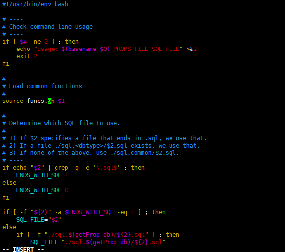 报错,提示找不到funcs.sh文件,环境变量有问题,修改脚本runSQL.sh文件,修改如下:
