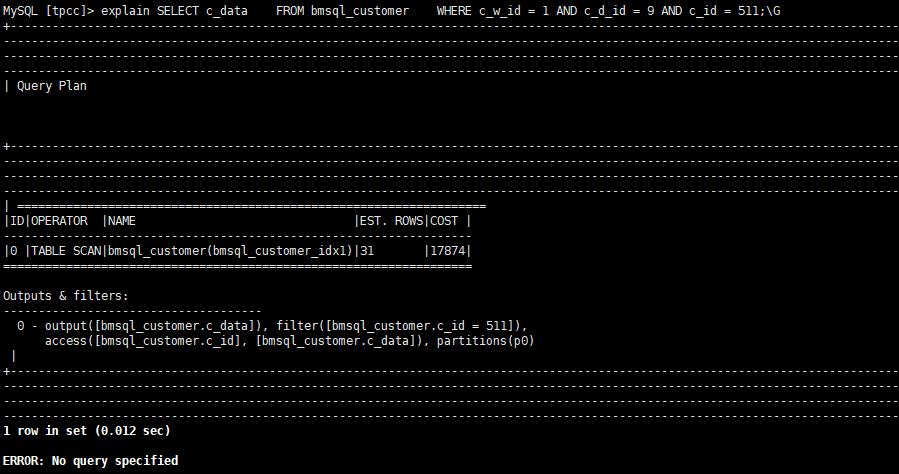 MySQL [tpcc]> explain SELECT c_data FROM bmsql_customer WHERE c_w_id = 1 AND c_d_id = 9 AND c_id = 511;\G