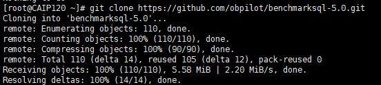 [root@CAIP120 ~]# git clone https://github.com/obpilot/benchmarksql-5.0.git