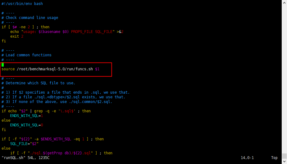 source /root/benchmarksql-5.0/run/funcs.sh $1