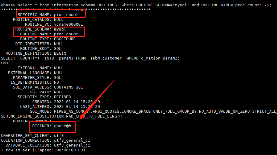 2,select * from information_schema.ROUTINES where ROUTINE_SCHEMA='mysql' and