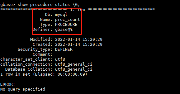查看difiner,检查是否为该用户创建,这方面问题大多权限问题,这里给出查看存储过程的一些信息的方法。
