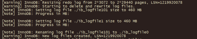 修改日志文件大小的方法很简单,只需要修改参数文件中的innodb_log_file_size的设置,然后重新启动MySQL即可。不需要删除当前的日志文件,在启动过程中,MySQL会发现参数值和当前日志文件的大小不一样,然后自动删除旧的日志文件,并创建新的日志文件,在MySQL的错误日志里会有如下记录: