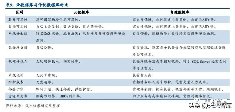 云数据库服务得到企业青睐。云数据库作为云服务的核心组成部分,为制造业企业和小微 企业提供成本低廉、功能丰富的数据存储服务,企业无需斥资购买商业数据库或者雇佣专业人 员根据开源数据库自行搭建。根据国家统计局数据显示,2019 年我国小微企业超过 7000 万家, 而阿里云、腾讯云、华为云用户数分别为 300 万、200 万、100 万,市场渗透率有待提高。上 云已成为趋势,未来会有更多小微企业选择使用云数据库,云数据库规模将继续扩大。
