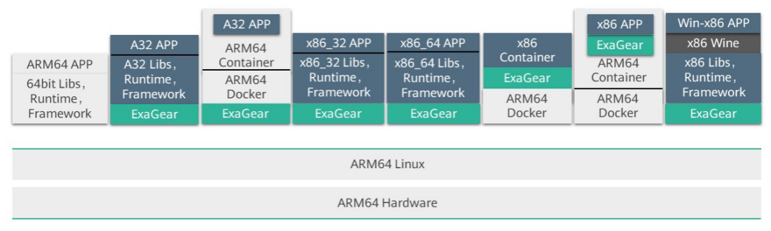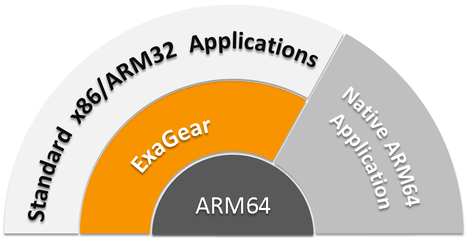 行业相关的无源码商业软件。这类软件只有二进制、没有源码,在行业内又有相当的影响力。在这样的场景下,需要ExaGear动态二进制翻译技术保障顺利完成迁移。