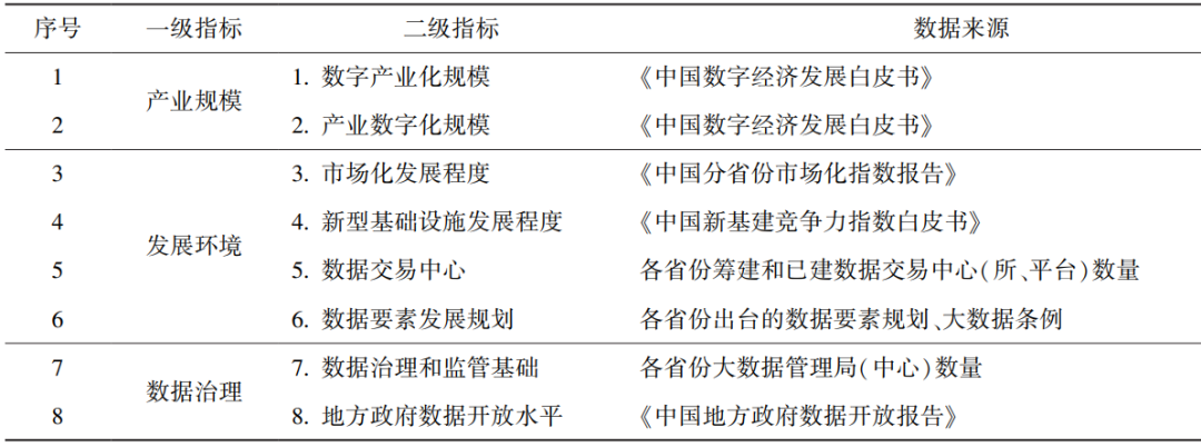 从理论上看,陶卓[18]等提出数据要素市场化配置的理论框架包含4个维度,分别是数据要素维度、数据主体维度、数据载体维度和制度机制维度;何玉长和王伟[16]认为数据要素市场化的要件至少要包括数据要素市场定价、数据要素市场交易、数据要素市场竞争和数据要素市场制度等方面。从实践上看,2021年8月,广东出台全国首个数据要素市场化配置改革行动方案,提出“1+2+3+X”的改革思路和五大类任务,其中强调了完善法规政策,优化制度供给,构建两级数据要素市场结构,围绕数据集聚、运营和交易等环节,推动数据新型基础设施、数据运营机构、数据交易场所三大枢纽建设,打通供需渠道,保障数据要素生产、分配、流通、消费各环节循环畅通。从全国范围看,我国数据要素市场化程度不仅滞后于传统生产要素市场,也滞后于市场经济和数字经济的发展。严格意义的数据要素市场尚未建立,数据确权、定价、交易、流通等市场环境尚未形成,严重制约数据要素价值化作用的发挥,加快培育数据要素市场,才能抢抓数字经济发展战略机遇期,塑造数字经济时代竞争新优势。