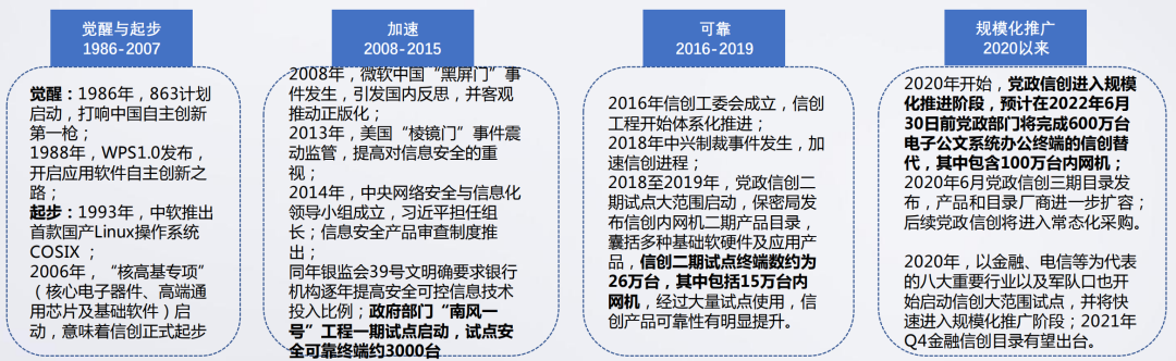 编者按:信创使得国产软硬件厂商在政策推动下快速崛起,获得发展机遇;在应用端,银行业作为金融信创试点的排头兵, 大量信创改造需求使得银行IT板块景气度持续高涨。
