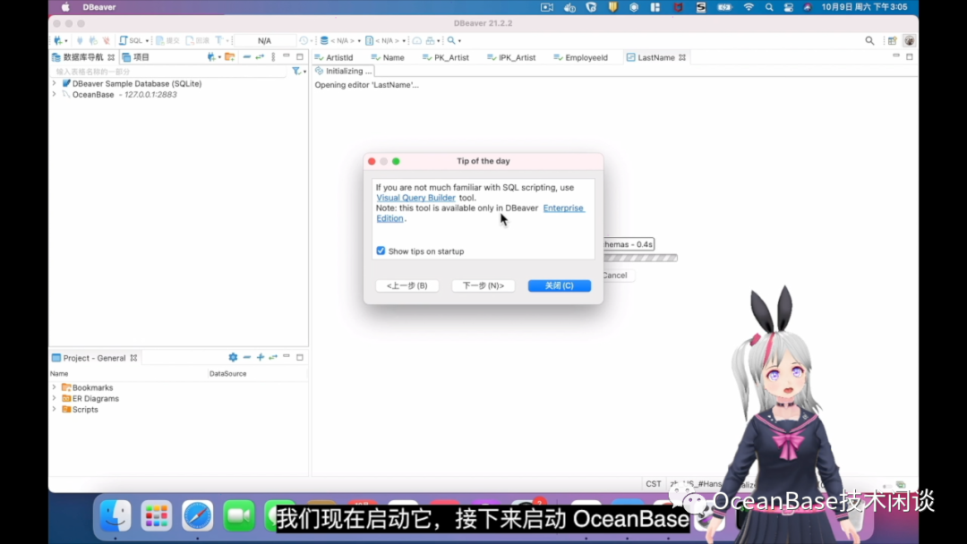 DBeaver 启动后界面如下,因为我们要新建 OceanBase 的连接,所以这里就不创建示例 SQL Lite 连接了。
