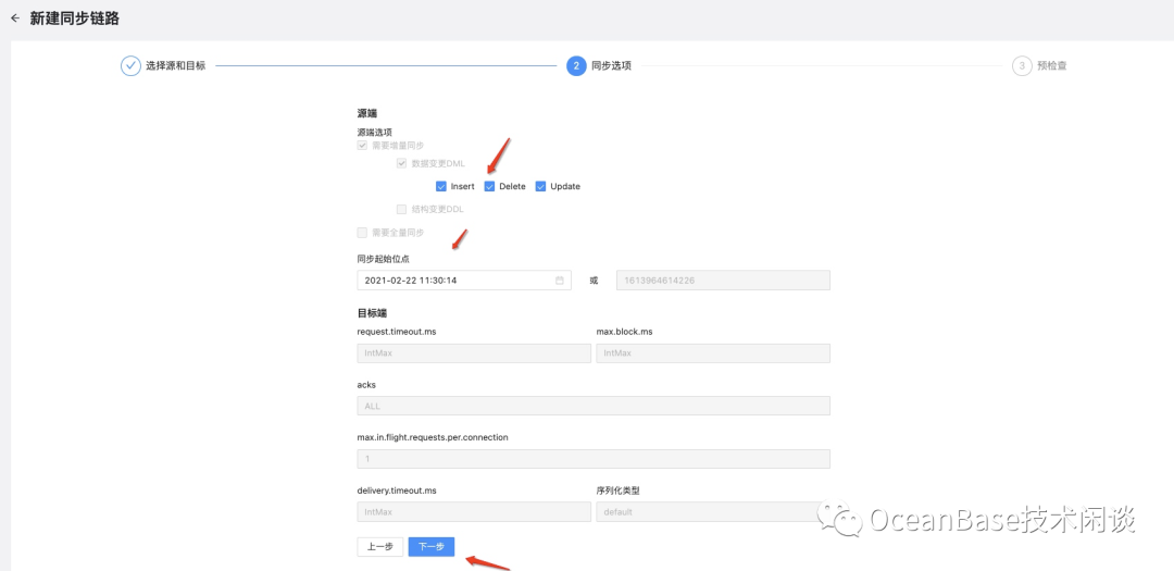 选择也好同步的 DML 类型和同步起始位点(不能太早)。