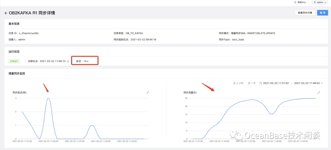 影响延时的因素有:OB 压力、kafka 压力、网络延时、大事务。在一定压力下,秒级延时(5s 以内)不是问题。