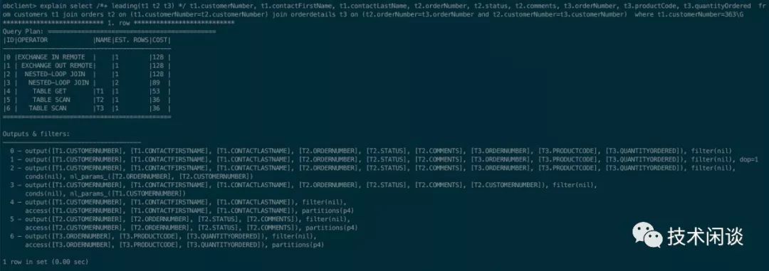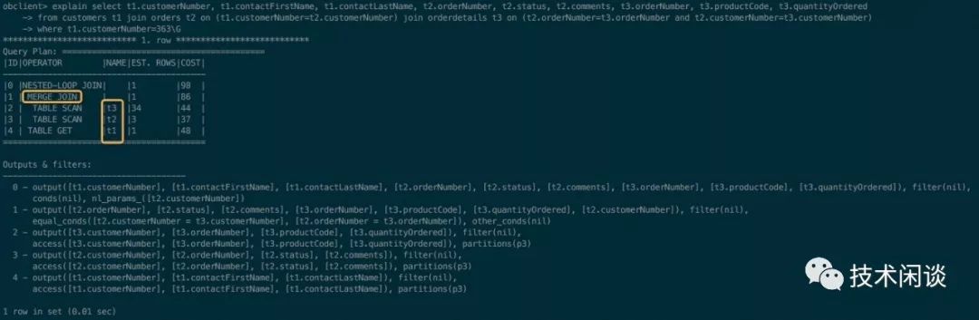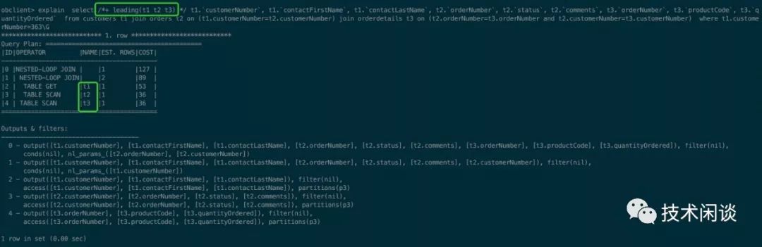 obclient> explain select t1.customerNumber, t1.contactFirstName, t1.contactLastName, t2.orderNumber, t2.status, t2.comments, t3.orderNumber, t3.productCode, t3.quantityOrdered