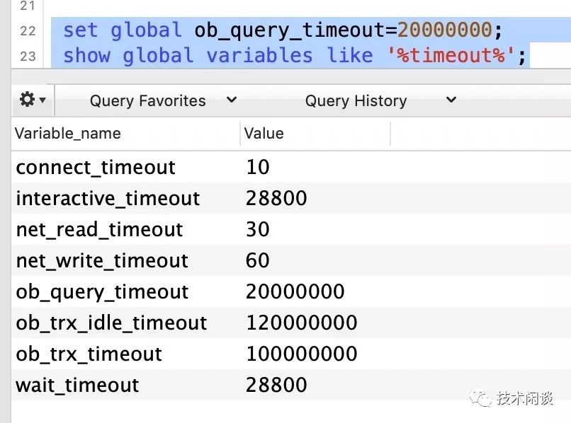 set global ob_query_timeout=20000000;