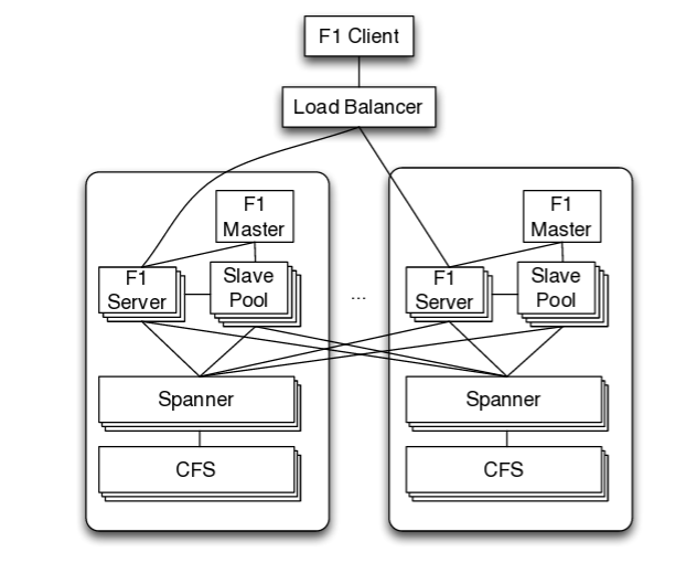 Google的F1节点是无状态的,客户端请求经负载均衡再到一个F1节点 ,F1不存储数据,向Spanner请求数据。F1如果加机器就自动做分片的负载均衡。Google描述的分布式数据库的负载均衡逻辑应该就是分布式数据库架构的设计目标。
