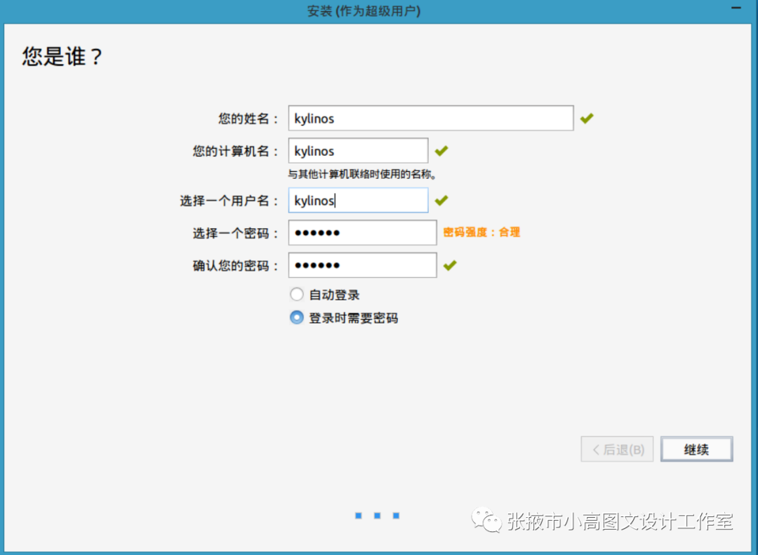 输入相关信息,同时需要注意“选择一个用户名”中只可包含小写字母、数字、连字符和下划线。密码长度不可少于 6 位。信息正确后,【继续】按钮由灰变亮,点击【继续】按钮,此时会将系统信息写入硬盘,如下图所示: