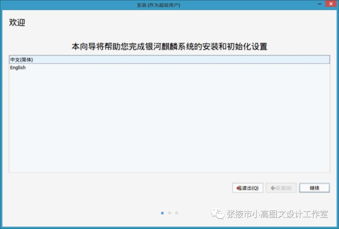 双击图标【安装Kylin 4.0】,进入向导界面,选择安装语言,点击【继续】;