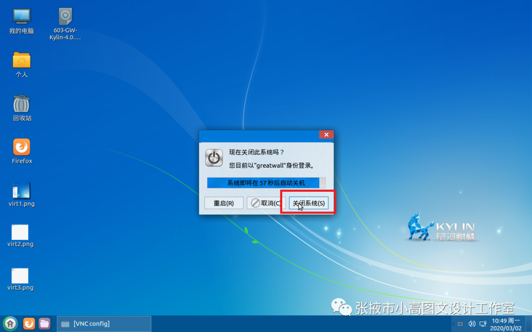 当需要关闭系统或进行重启操作时,点击桌面左下角【开始菜单】-【关机】选项,在弹出的关机与重启对话框中选择【关闭系统】或【重启】按钮。