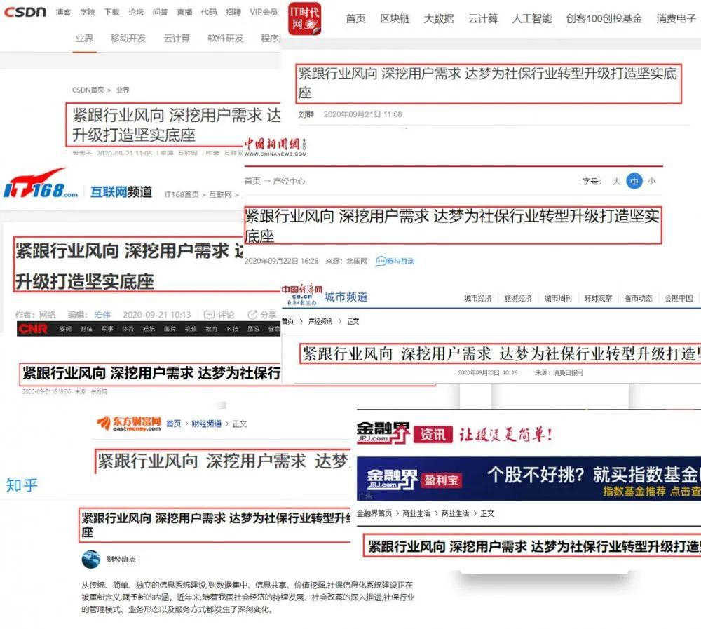 近日,CSDN、IT168、IT时代、知乎、金融界、东方财富网、中国广播网(央广网)、中国新闻网、中国经济网等多家媒体发表题为《紧跟行业风向 深挖用户需求 达梦为社保行业转型升级打造坚实底座》的新闻报道,对达梦公司的产品特点、社保行业解决方案以及公司在社保行业的多个典型应用案例进行了详细报道。