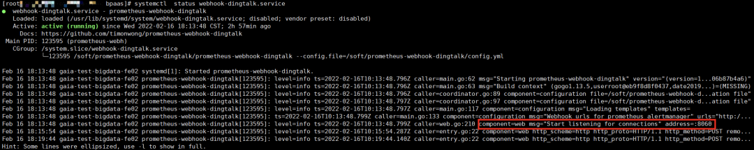4.6 查看 webhook-dingtalk 服务状态