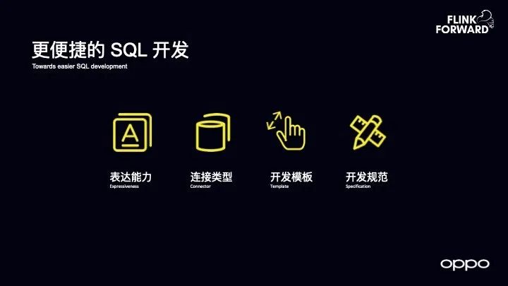 因为 OPPO 现在的实时数仓是基于 SQL 做的,所以在未来希望能够具有更好的、更便捷的 SQL 开发能力,总结来下就是以下四点:表达能力:虽然 Flink SQL 正在朝着标准 SQL 不断演进,但是目前一些场景仍旧无法满足,比如在一个 SQL 里面做多个窗口的统计等,因此需要增强Flink SQL 的表达能力。