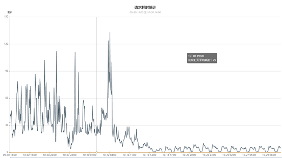 从上图可以看出,存储引擎优化后时间延迟进一步降低并趋于平稳,从平均80ms到平均20ms左右,但是还是不完美,有抖动。