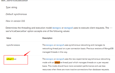 为了适应高并发的读写场景,mongodb-3.6开始引入serviceExecutor: adaptive配置,该配置根据请求数动态调整网络线程数,并尽量做到网络IO复用来降低线程创建消耗引起的系统高负载问题。