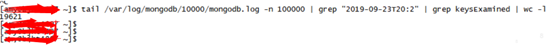 该集群有多个分片,其中一个分片配置优化后的主节点和同一时刻未优化配置的主节点慢日志数比较: