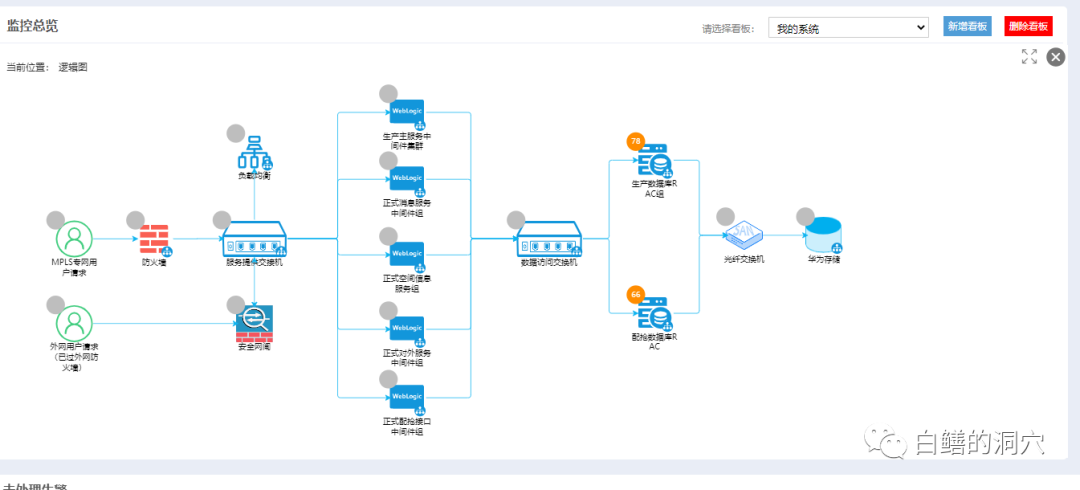 对于某个系统,可以看到全链路的逻辑拓扑,并通过逻辑拓扑上的告警信息及时发现问题。管理员具有具体进行专业化诊断分析能力的专业人员,其微应用注重一些技术细节与深度分析能力的提供。