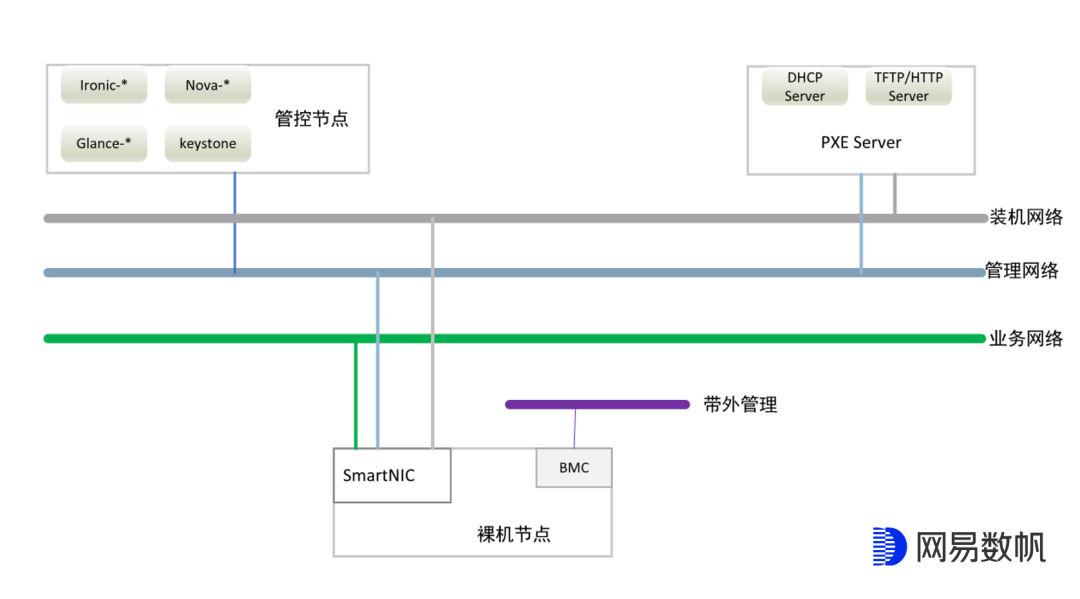 这种方案下,智能网卡裸机节点部署就存在3种网络:
