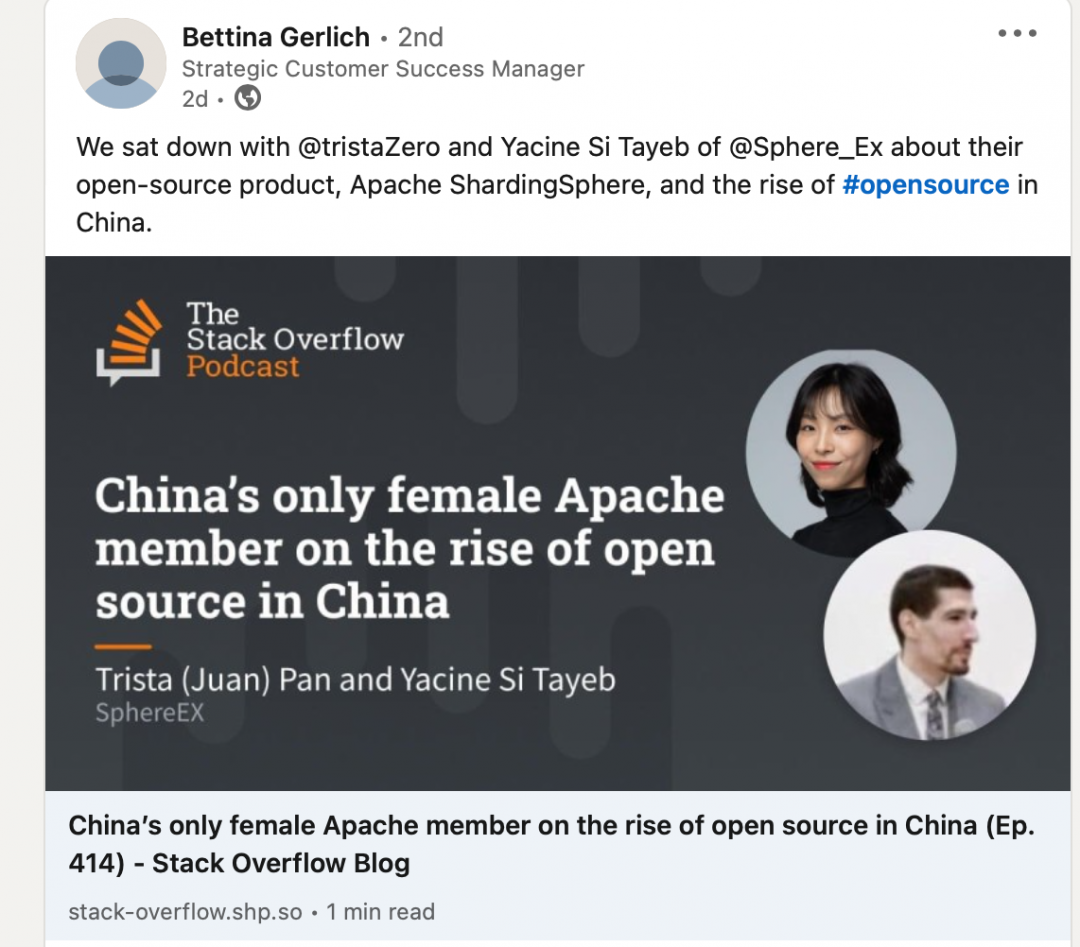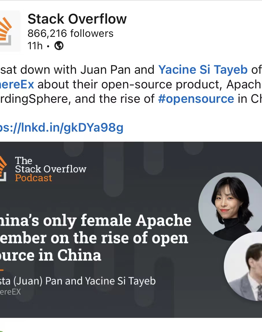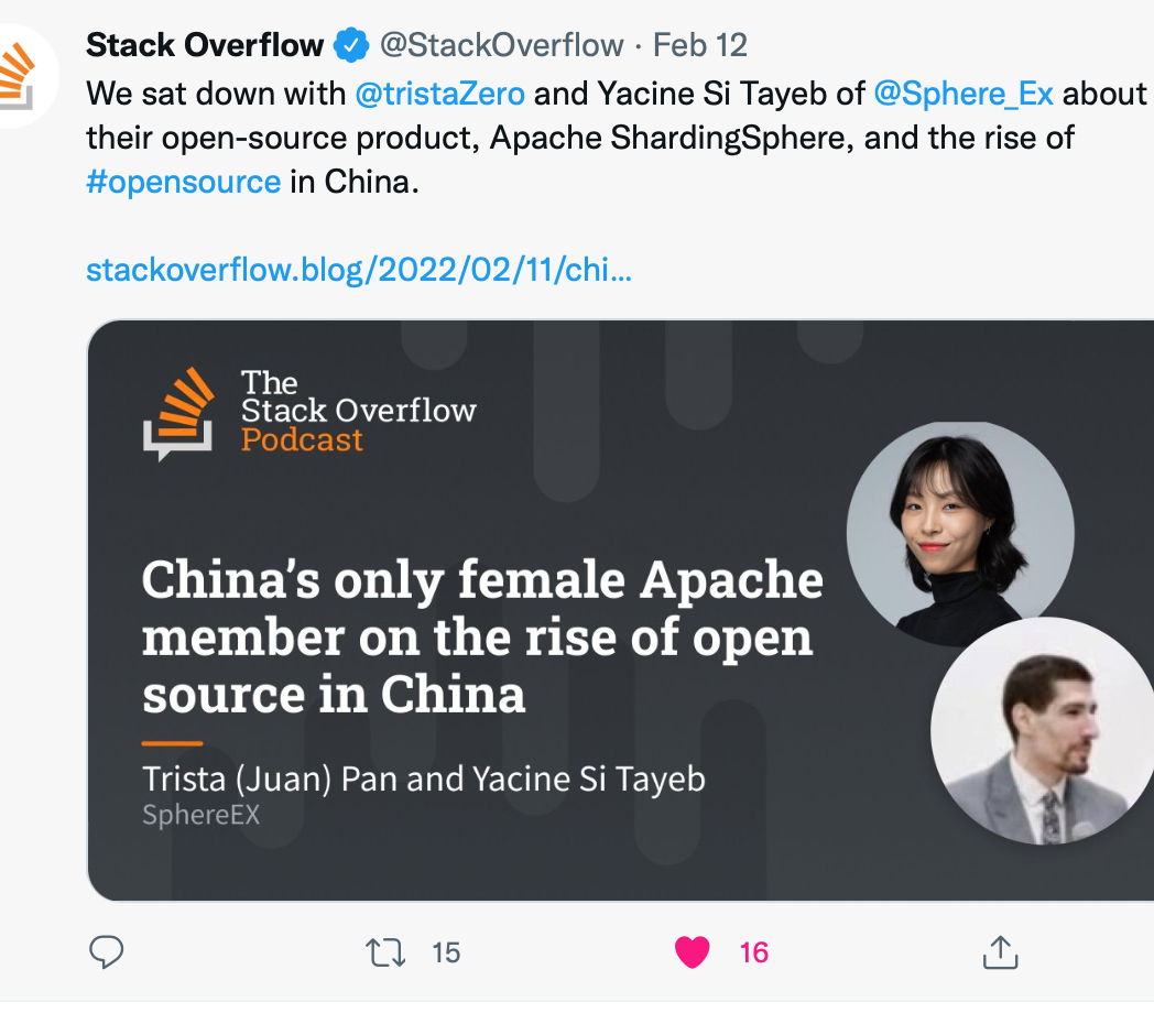 Apache ShardingSphere & Stack Overflow Podcast:中国唯一 Apache Female Member 讲述中国开源理念