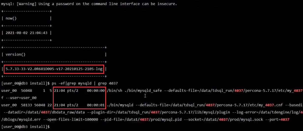 重启db,先用ps -ef |grep 4037 |grep mysql看一下之前mysqld进程的启动用户,切换到那个用户下(注意启动用户和目录权限,由于部署环境原因,有些环境下的权限组为tdsql:users)