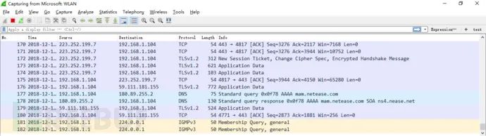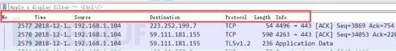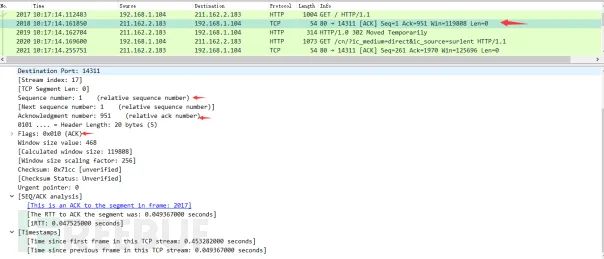 Step3:输入过滤条件获取待分析数据包列表 ip.addr == 211.162.2.183