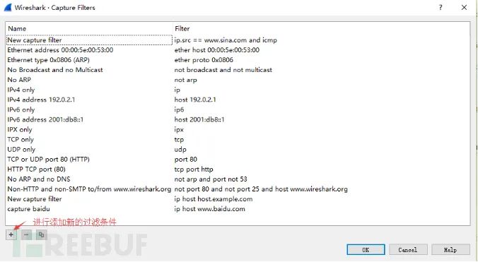 捕获过滤器的菜单栏路径为Capture --> Capture Filters。用于在抓取数据包前设置。
