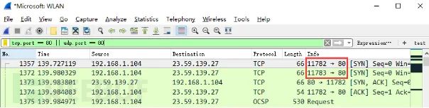 tcp.dstport == 80,只显示TCP协议的目的主机端口为80的数据包列表。