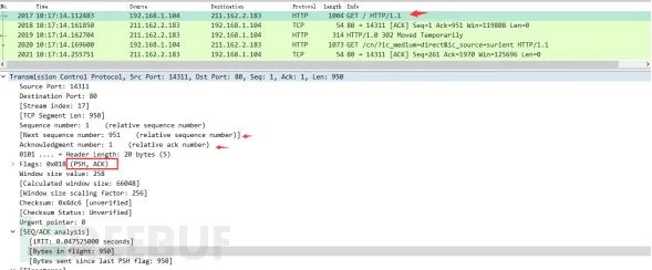 其中,对于我们日常的分析有用的就是前面的五个字段。它们的含义是:SYN表示建立连接,FIN表示关闭连接,ACK表示响应,PSH表示有DATA数据传输,RST表示连接重置。