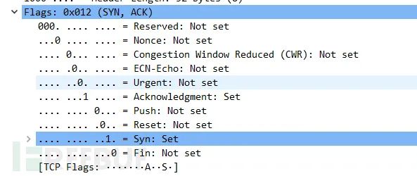 Ack = 1 : 表示当前端成功接收的数据位数,虽然服务端没有发送任何有效数据,确认号还是被加1,因为包含SYN或FIN标志位(并不会对有效数据的计数产生影响,因为含有SYN或FIN标志位的包并不携带有效数据)。