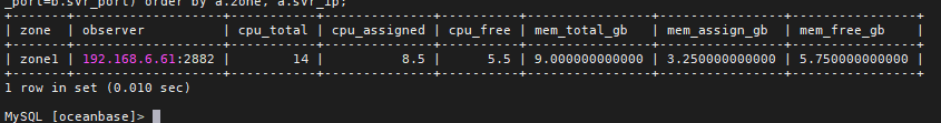 #创建ocp_monitor资源池create resource pool ocp__monitor_pool unit='ocp_unit_config', zone_list=('zone1'), unit_num=1;