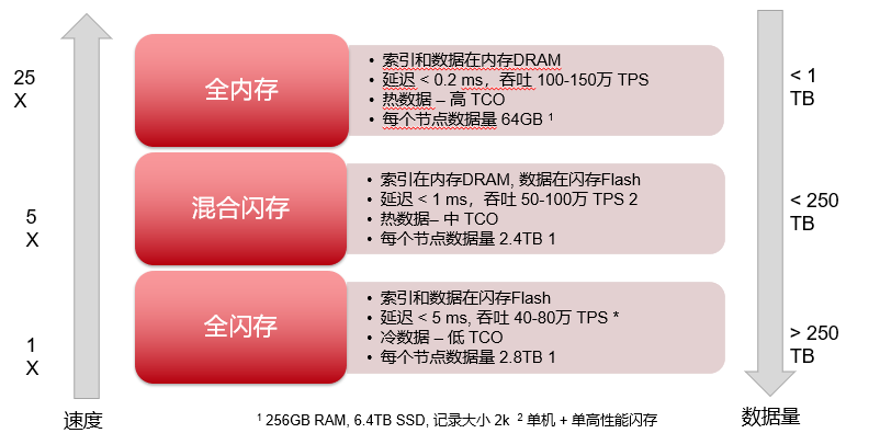 作为新一代NoSQL的代表,Aerospike支持上述所有存储介质,并且能够根据用户的实际需求,选择不同的存储介质进行组合。通过混合存储架构,提供满足用户需求的性能表现,实现高性价比的数据库解决方案。