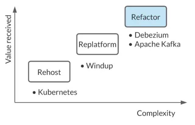 重新平台化(Replatforming):如果改变基础设施不足以解决问题,而且你要在不改变架构的情况下对应用程序的边缘做一些改变时,重新平台化是一种可选方案。也许你正在改变应用程序的配置方式,以便将其容器化,或者从传统的 Java EE 运行时转移到一个开源运行时。在这种情况下,你可以使用像 windup 这样的工具来分析你的应用程序,并得出一份报告,该报告会说明需要做的事情。