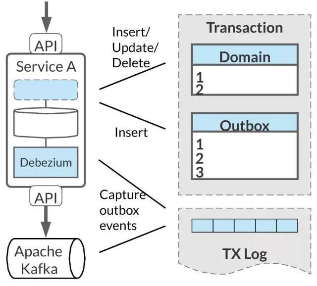 使用 Debezium 实现的 Outbox 模式可以让服务以安全和一致的方式执行这两项任务。在更新数据库时,服务不会直接向 Kafka 发送消息,而是使用一个事务来执行正常的更新,并将消息插入到其数据库中一个特定的 outbox 表中。一旦事务被写入数据库的事务日志中,Debezium 就可以从那里获取 outbox 消息并将其发送到 Apache Kafka 中。这种方法给了我们非常好的属性。通过在单个事务中同步写入数据库,该服务能够受益于“读取自己写入”的语义,即对该服务的后续查询将返回新的持久化记录。同时,通过 Apache Kafka,我们能够以可靠、异步的方式传播给其他服务。Outbox 模式是一种成熟的方法,用于避免可扩展的事件驱动的微服务所面临的双重写入问题。它非常优雅地解决了服务间通信的难题,而不需要所有参与者都同时可用,包括 Kafka。我相信 Outbox 将成为设计可扩展事件驱动的微服务的基础模式之一。