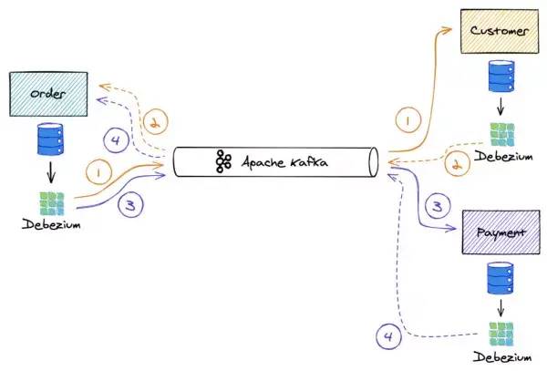 这里最酷的是,我们可以使用 Debezium、Apache Kafka 和 Outbox 模式实现 Saga。有了这些工具,就可以利用编排式的方法,在一个地方管理 Saga 的流程,并检查 Saga 事务的总体状态。我们还可以将编排与异步通信相结合,将协调服务与参与服务的可用性,甚至与 Kafka 的可用性解耦。这给了我们两全其美的结果:编排式以及参与服务之间异步、非阻塞、并行的通信,没有时间上的耦合。